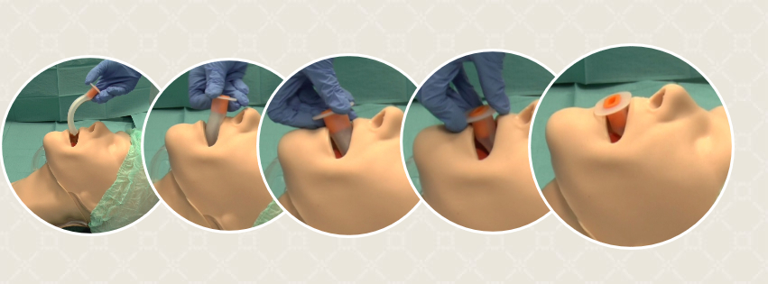 Zavádzanie vzduchovoduOrofaryngeálny vzduchovod zavádzame do úst konkavitou smerom nahor, vsunieme špičku vzduchovodu do polovice úst, otočíme o 180° a pokračujeme v zasúvaní do správnej polohy.