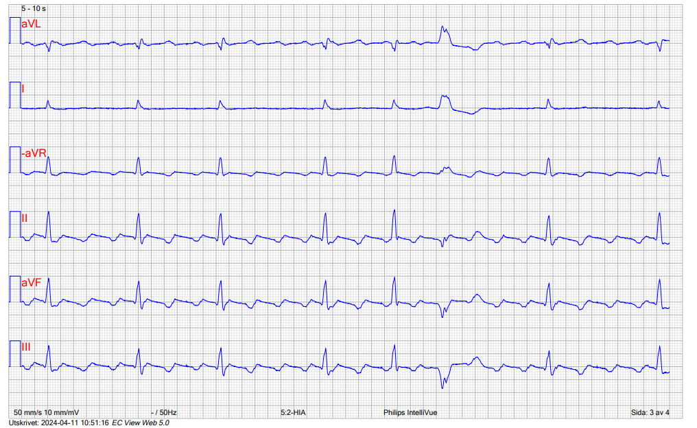Bedöm första EKG:tVälj de beskrivningar som du tycker stämmer in på EKG:t |